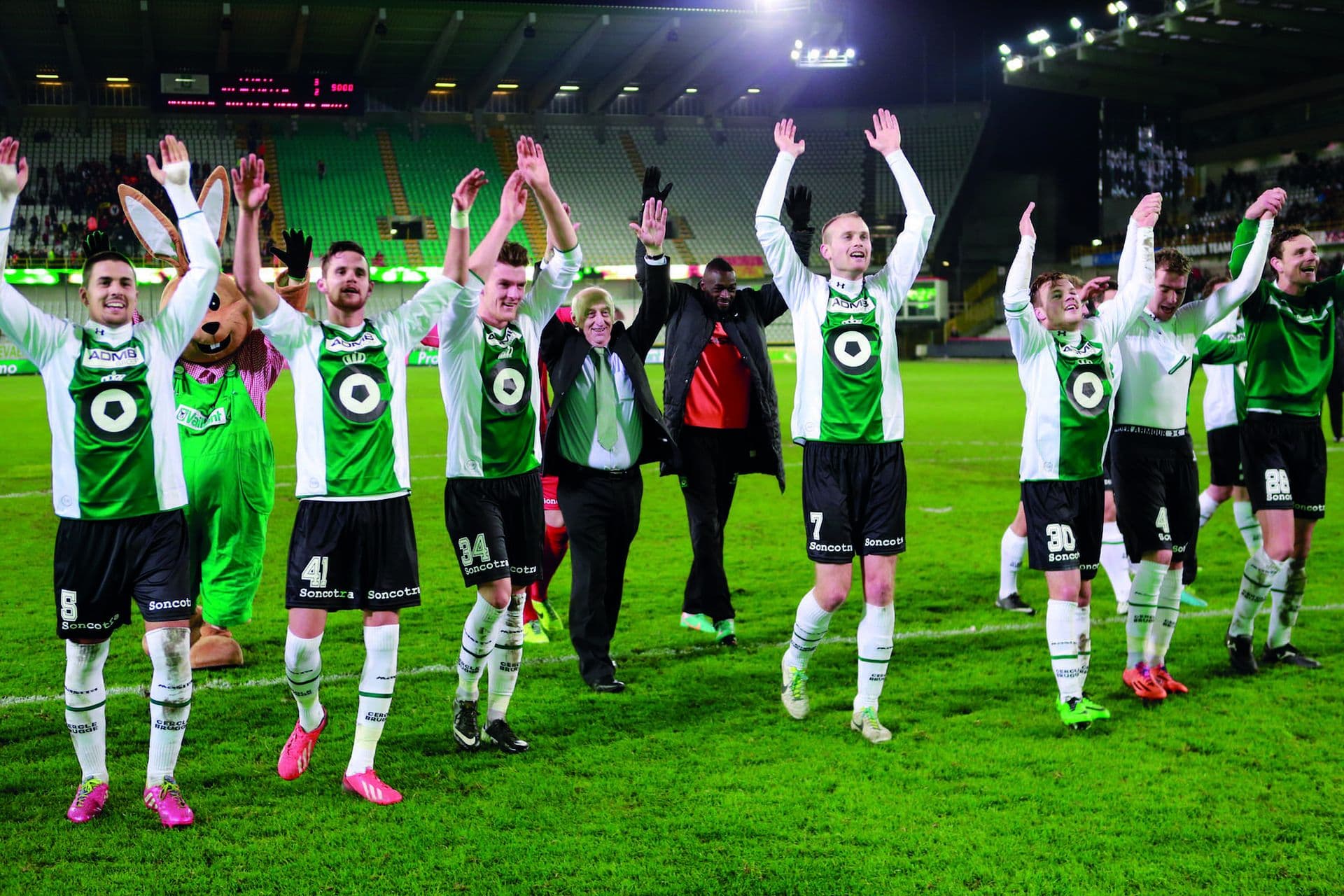 Nu volgden de “relegation Play-Offs”. De vier “gelukkigen” waren Cercle, STVV, KV Kortrijk en Beerschot. Van de zes duels zakten nr 3 & 4, speelde nummer 2 barragewedstrijden tegen wat later Patro Eisden Maasmechelen bleek te zijn, en mocht nr 1 in de Jupiler Pro League blijven. Cercle eindigde 2e. Barrages bijgevolg. Opnieuw goed nieuws. Groen-Zwart, onder de leiding van Bernd Storck (!) (lees verder), was meer dan een maatje te groot voor de Limburgers.